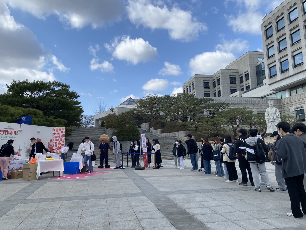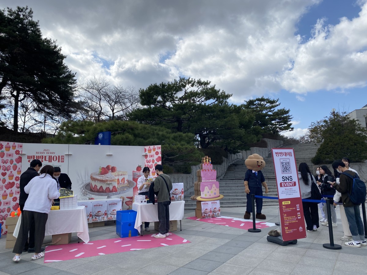 단국대 천안캠퍼스 율곡기념관 도서관 광장에서 팝업스토어 행사를 진행하고 있다.