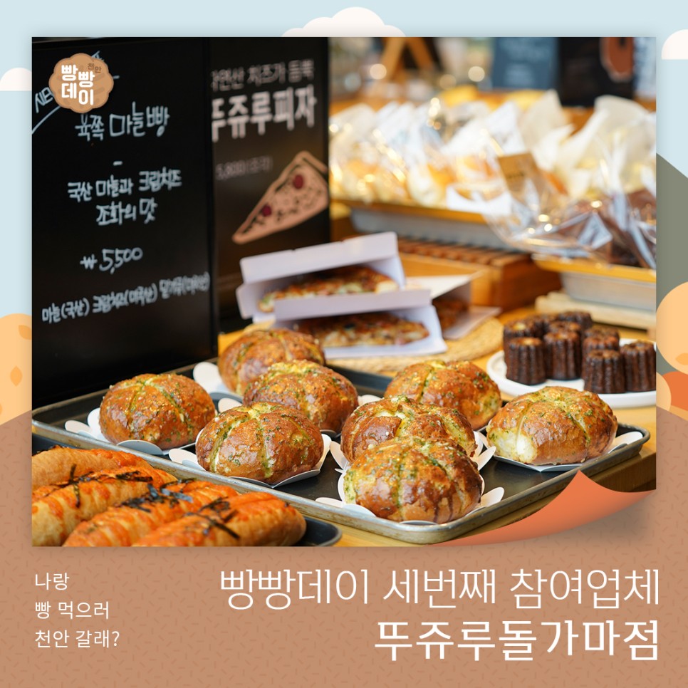 회원가입 로그인 빵토피아 빵의도시 천안 빵토피아 소개 인사말 빵빵데이 축제 연혁 협력사 천안빵소(所) 빵소(所) 소개 지정업소 신청절차 빵빵실록 히스토리 홍보영상 사진자료 보도자료 카드뉴스 커뮤니티 공지사항 문의사항 빵지순례단 모집 2024 빵빵데이 천안체험단 모집 빵지순례후기